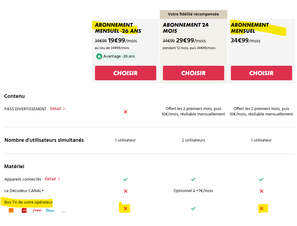 Les décodeurs des FAI ne sont pas compatibles avec les offres sans engagement.