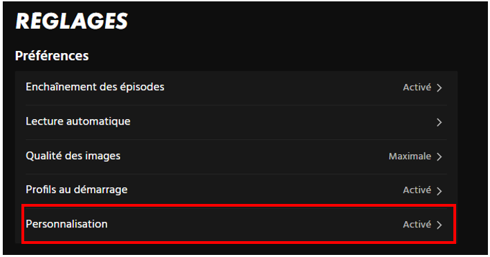 Pouvez-vous vous assurer que la personnalisation est bien activée ?