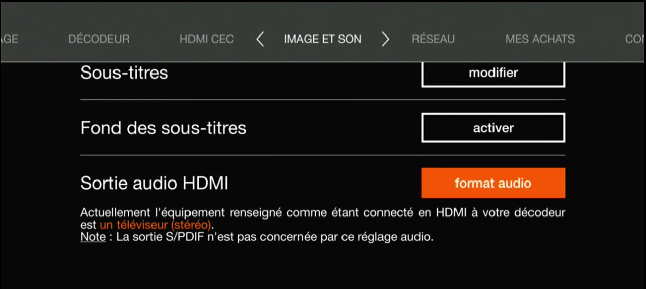 Dans les réglages audio de votre décodeur (sur la page d'accueil Orange), essayez de modifier le format audio puis dites-nous si vous constatez une amélioration ?