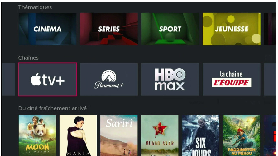 Oui c’est bien cela , c’est dans la page d’accueil de l’interface que je n’ai pas les vignettes de toutes les chaînes et services vidéos . Mais les films de HBo et Apple sont bien listés sur la page cinéma.
