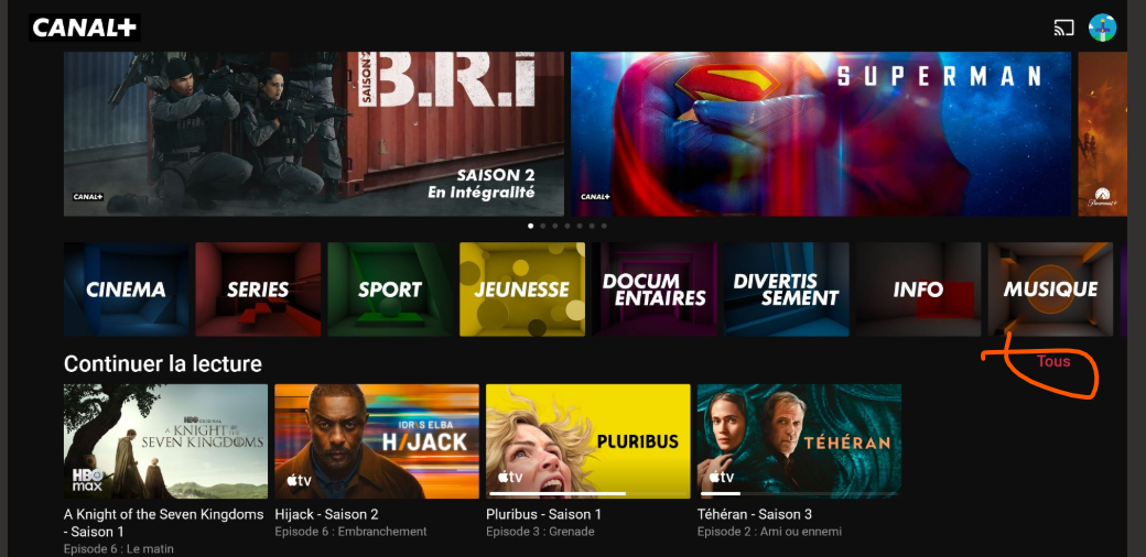 Si vous ne voyez pas ces choix, merci de m'indiquer la version CANAL+ dans réglages/ A propos de cet appareil.