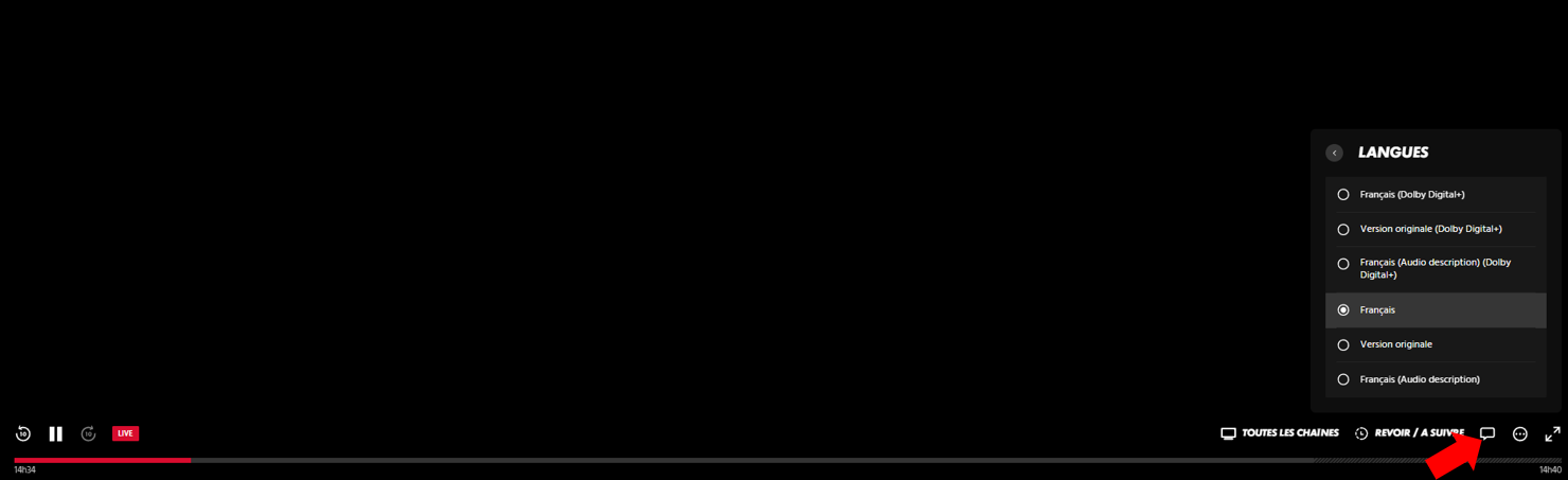 Modifiez la langue de vos programmes. Pour ce faire, rendez-vous sur CANAL+ ou CANAL+ Grand Ecran (si vous bénéficiez de cette chaîne dans votre abonnement) et modifiez la langue de "VO/VF avec Dolby Digital" à VF (simple).