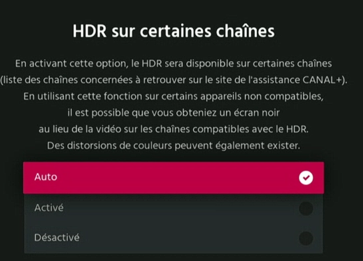 Pensez aussi à activer le "HDR sur certaines chaînes".