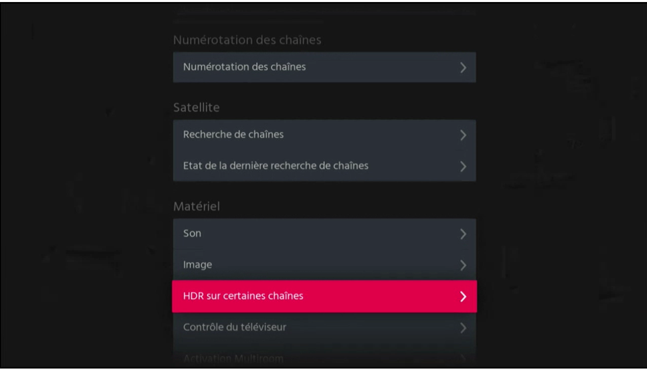 Sur le décodeur, est-ce que le choix "HDR sur certaines chaînes" est bien sur "Auto" ?