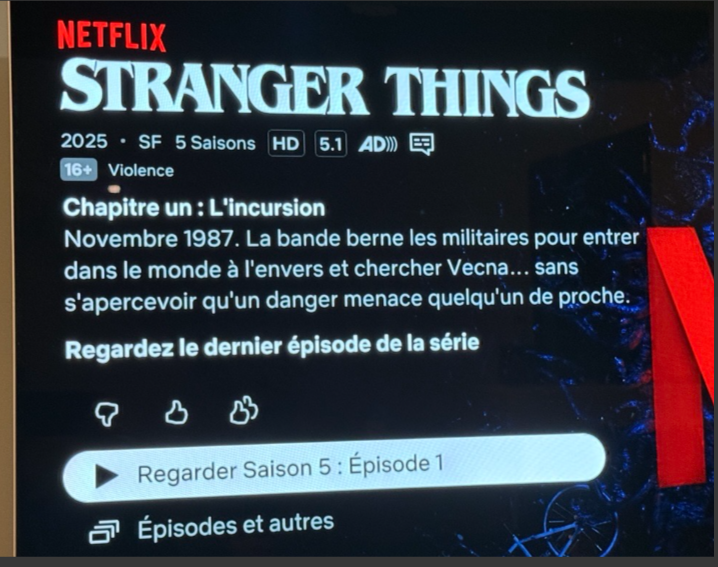 Et la même série lancée depuis une smart tv avec le même compte Netflix.