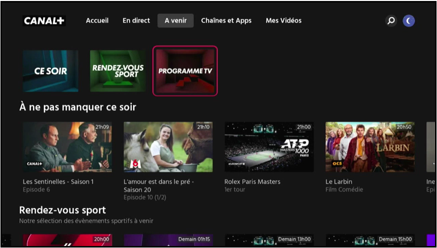 Le Guide des programmes se trouve désormais dans la rubrique "à venir" puis "Programme TV"