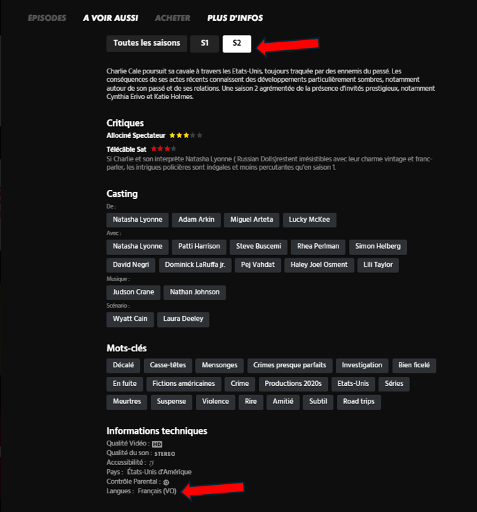 Bonjour, la saison deux de poker face n'est pas disponible en version multilingue. Est ce un oubli ?