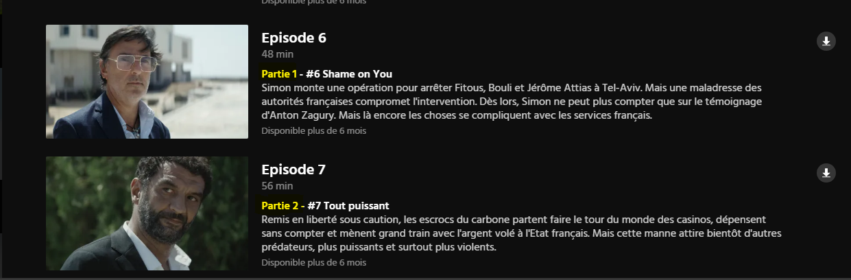 Les 12 épisodes sont bien regroupés sous une seule et même saison, avec la mention « Partie 1 » et « Partie 2 » (à partir de l’épisode 6).