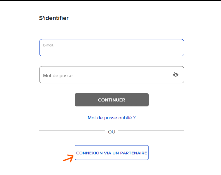Rendez-vous sur leur site, cliquez sur "se connecter " puis choisissez "connexion via partenaire".