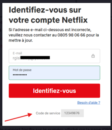 Lors de l’appel, pensez bien à communiquer à Netflix le code de service affiché à l’écran pour qu’ils puissent retrouver votre compte.