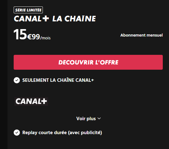 J'avais depuis le changement de ma box Free (révolution vers Pop) en octobre souscrit a la chaine en live avec pub mais depuis le 8 février j'ai modifié mon offre vers canal+ canal+ a la demande Apple TV sans engagement pour 24.99 €.