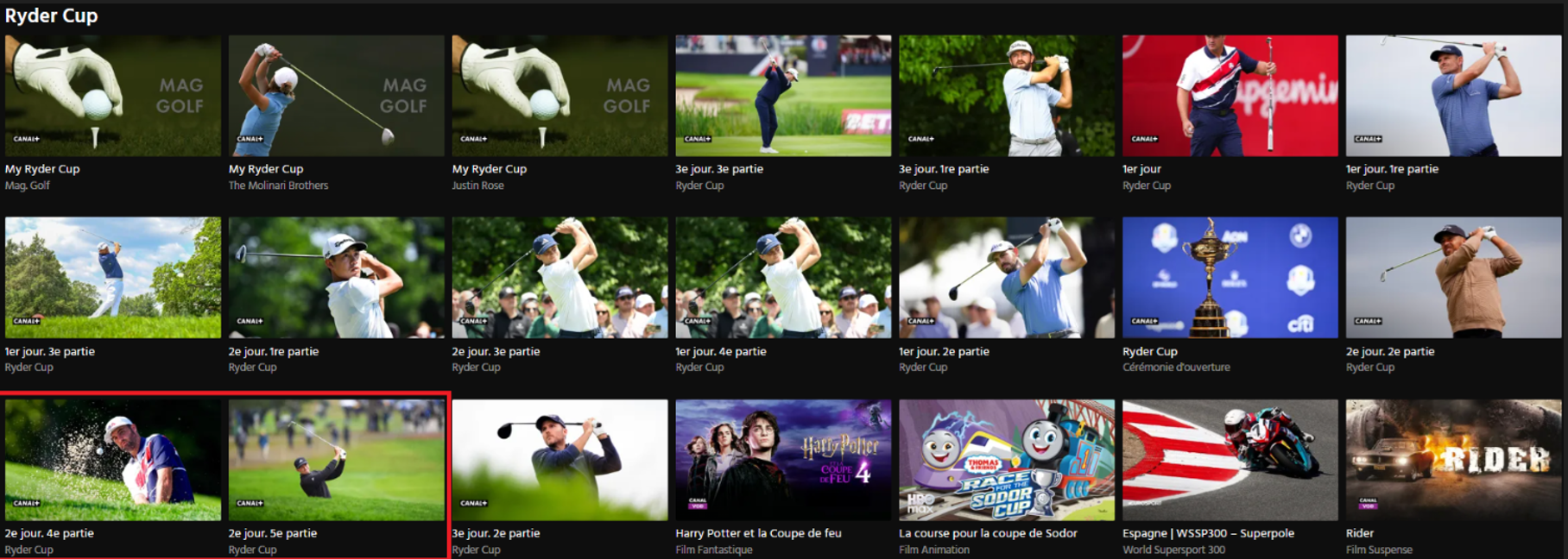 Pourquoi les 4eme et 5ème cession du 2ème jour de la Ryder Cup ne sont pas visibles en replay? Ce sont les seules de la compétition à ne pas apparaître.